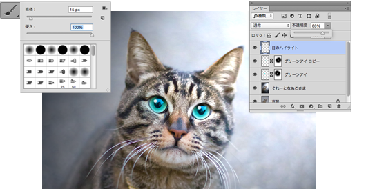 さらに透明度を低くすると瞳に透き通った感じがプラスされます。